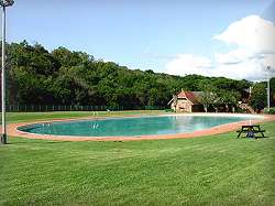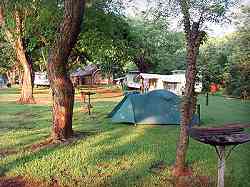 A luxury resort on the edge of the Blyde River Canyon (40km north of Graskop), with 30 shady and grassed camping and caravan sites - all with electrical points and braai (barbeque) facilities. The campsite have immaculately clean ablution facilities, a laundromat, TV room, swimming pool and a children's play park. Horse-riding activities are on offer at the resort. A 72-sleeper, self-catering Youth Lodge is also available for large groups. |